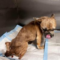 Wir wissen um das Thema „Qualzucht“, möchten dies hier jetzt jedoch nicht diskutieren, da es Alicent nicht hilft. Sie ist auf dieser Welt und verdient das beste Leben. Es fällt positiv auf, dass Alicents Schnauze recht lang ist für eine Vertreterin ihrer Art und auch hat sie eine kleine Rute, mit dem sie alle freudig begrüßt. Es ist jedoch bekannt, dass Französische Bulldoggen durchaus zu Futterunverträglichkeiten und Darmproblemen neigen und auch dies ist bei Alicent so.