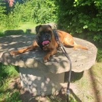 Der freundliche Boxer Rüde Atak ist zu uns in den Boxerhof gekommen. Atak ist in einem liebevollen Zuhause aufgewachsen. Leider können seine Menschen aufgrund des fortgeschrittenen Alters und schlechter Gesundheit ihn nicht mehr versorgen.