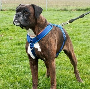 Er läuft gut an der Leine und hat auch Grundgehorsam. Das Autofahren liebt er, wie alle Boxer.