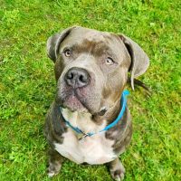 Baba ist ein American Bully und im April 2021 geboren. Er ist ein intakter Rüde mit circa 40kg Körpergewicht. Zu seiner Vorgeschichte können wir nicht viel sagen, nur das er aus einer nicht artgerechten Haltung kommt. Baba ist grundsätzlich sehr freundlich zu Menschen, auch bei fremden Menschen hat er keine Probleme und geht freudig auf diese zu. Er läuft gut bis sehr gut an der Leine und lässt sich ruhig an Hunden vorbeiführen. Rassetypisch ist er allgemein eher der entspannte Typ. Da er im Juni 2024 einen Kreuzbandriss mit anschließender OP hatte, bekommt er aktuell Physiotherapie, die er mit Bravour meistert. Baba lässt sich gerne auf Menschen ein und für Futter würde er fast alles tun. Leider kam Baba aus der Vermittlung zurück da es einen Beissvorfall gab, wie es zu dieser Situation kam können wir nicht 100% nachvollziehen. Aufgrund dessen wird Baba nicht in eine Familie mit Kindern vermittelt. Andere Haustiere wie Hamster, Kaninchen, Katze etc. sollten auch nicht vorhanden sein. Im Tierheim zeigt sich Baba sehr interessiert an Hündinnen, andere Rüden braucht er nicht in seinem Leben.