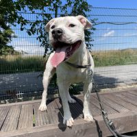 Wir haben den süßen Staff-Rüden vom Tierheim Offenbach übernommen, um seine Vermittlungschancen zu erhöhen.
