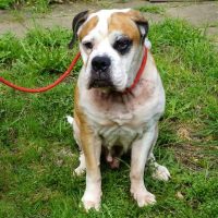 Leider ist unklar, wie viel Zeit der Große noch hat: Er hat Probleme mit den Augen, dem Zahnfleisch, der Haut und hört nicht mehr so gut. Auch an seinem Übergewicht arbeiten wir, was in Bodos zukünftigem Zuhause weitergeführt werden sollte. Mit weiteren Altersbeschwerden muss leider gerechnet werden, denn für einen Hund seiner Größe ist Bodo wirklich nicht mehr der Jüngste. Seine Rasse des American Bulldog wurde behördlich festgestellt, weshalb er auch innerhalb Hamburgs vermittelt werden darf.