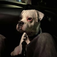 Dieser wunderschöne weiße Boxer namens Boomer, der aus einer fahrlässigen Situation herausgekommen ist, sucht nun eine liebevolle Familie für ein neues Leben voller Zuneigung.
