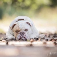 Er ist ein gemütlicher Geselle, liebt Menschen, lässt sich auch von Fremden problemlos anfassen, ist stubenrein und für Wohnungshaltung geeignet. Auch ein Leben in der Stadt wäre für ihn kein Problem. Er ist sehr verschmust, grundsätzlich verträglich mit Artgenossen, kann in Hundegruppen spazieren gehen, fährt gern Auto und hat bereits mit einer Katze zusammengelebt. Gesundheitlich ist er stabil – eben so, wie eine Bulldogge gesund sein kann.