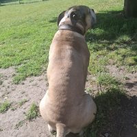 Bulls sucht eine Einzelperson, oder ein Paar mit Hundeerfahrung … keine Kinder, keine Katzen. Gegen eine nette Hündin hat er nichts einzuwenden.