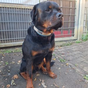 Rottweiler-typisch hat er einen Schutztrieb und ein gewisses Misstrauen fremden Menschen gegenüber.