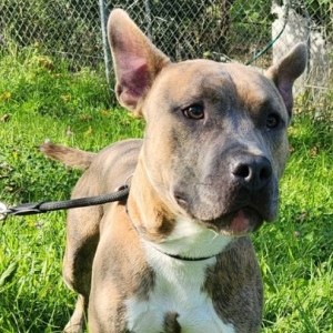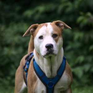 Bill ist ein stattlicher und kräftiger Amerikanischer Bulldog-Rüde, der dringend in ein neues Zuhause ziehen möchte.