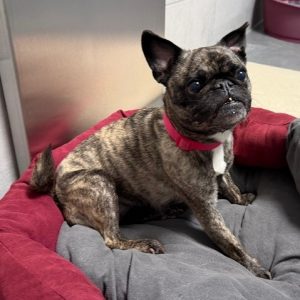 Ole wurde feige entsorgt. Der alte Mopsherr ist für sein Alter noch fit unterwegs. Vermutlich hat er Probleme mit dem Alleinbleiben. Bei uns lernt er im Moment als Bürohund, dass Menschen auch wiederkommen, wenn sie gehen. Dies klappt bereits sehr gut.