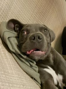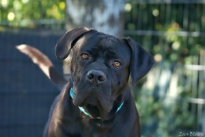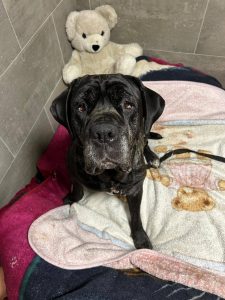 Akira, geboren im Oktober 2022, ist eine nicht kastrierte Rottweiler–Presa-Canario-Mix-Hündin mit etwa 37 kg und einer Schulterhöhe von ca. 56 cm.