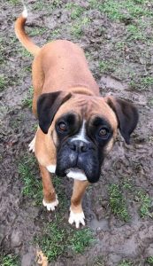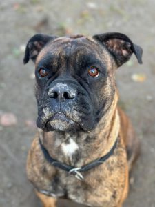 Die schöne, gestromte Boxerhündin Loona musste ihr Zuhause verlassen, da ihr Besitzer krankheitsbedingt nicht mehr für sie sorgen konnte.