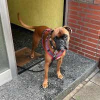 Ich bin mit Hündinnen und Jungspunden verträglich, gehe super gerne Gassi und bin voller Energie! Ein echter Jungboxer eben, mit faustdick hinter den Ohren, aber ich bin sehr charmant dabei.