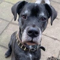 Clyde ist sehr sensibel und duckt sich bei schnelleren Bewegungen und auch beim Geschirr anziehen oder Halsbandwechsel reagiert er ziemlich vorsichtig teilweise auch ängstlich. Er ist jedoch, wenn er vertrauen gefasst hat total verschmust und genießt jede Aufmerksamkeit die er bekommen kann. Die Grundkommandos beherrscht der ältere Herr sehr gut. Für Clyde suchen wir ein ruhiges Zuhause in dem er die Zeit bekommt die er braucht. Kinder sollten wegen seiner Art nicht unbedingt im Haushalt leben.