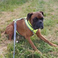 Cooper ist zu unser aller Erleichterung endlich im Boxerhof eingetroffen.Wir haben seit einiger Zeit wiederholt versucht, den Rüden in unsere Obhut zu übernehmen, was nun letztendlich mit vereinten Kräften gelungen ist.Der Rüde hat bisher in armseligen Verhältnissen gelebt und ist versorgungsmäßig immer gerade so über die Runden gekommen.Dadurch ist er sehr abgemagert und wird bei uns langsam an normale Futterportionen gewöhnt. Hunger hat er natürlich 24 Std. am Tag.Aber das wird sich auch im Laufe der Zeit normalisieren.Cooper hat eine gute Grunderziehung, ist abrufbar und geht brav an der Leine (siehe Videos).Langsam kommt der Rüde bei uns an, genießt sein weiches Hundebett, die Fürsorge und die Zuwendungen, die täglichen Ausläufe und das regelmässige Futter.Artgenossen begegnet er defensiv, seine Hunde-Freundschaften schließt er nach Sympathie. Katzen sollten nicht im neuen Zuhause leben.Da Cooper ein agiler Rüde ist, sollten die Kinder ab Teenie-Alter sein.Es ist uns wichtig, dass Cooper nun endlich die Sonnenseite des Lebens kennenlernt. Darum sollte er in der neuen Familie auch als Einzelhund verwöhnt werden.