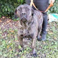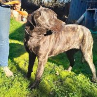 Daiana ist eine Cane Corse Mischlingshündin, groß, wachsam und am Anfang gegenüber Fremden skeptisch und vorsichtig.