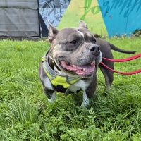 Endlich bekommt Minni Maus Luft, da sind dann auch mal aufgedrehte fünf Minuten drin, ein völlig neues Lebensgefühl für die Hündin. Mit der bei uns neu gewonnenen Lebensqualität macht sich die freundliche Bulldogge nun auf die Suche nach einem neuen Zuhause.