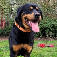 Bingo ist ein freundlicher und menschenbezogener Rottweiler, der bisher ein isoliertes Leben in einem Garten geführt hat. Trotz seiner Vergangenheit ist er ein fröhlicher Hund, der gerne herumkaspert und die Gesellschaft von Menschen sucht. Seine Neugier und Lernbereitschaft machen ihn zu einem tollen Begleiter, der bereits ist, die Welt zu entdecken.