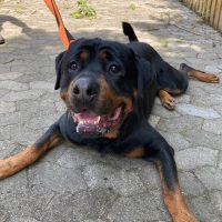 Gargamel, unser charismatischer Rottweiler-Rüde, ist ein echter Menschenfreund – und das gilt auch für Fremde. Er liebt den Kontakt und zeigt sich aufgeschlossen, benötigt jedoch klare und konsequente Führung, die er bereitwillig annimmt. Mit seiner Fähigkeit, Menschen gut einschätzen zu können, weiß er genau, was er sich erlauben kann – daher ist ein souveräner und erfahrener Mensch an seiner Seite wichtig.