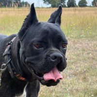 Das Erlebte lassen Gretel im ersten Moment ängstlich und sehr zurückhaltend sein, sie braucht ihre Zeit um neuen Menschen zu vertrauen. Ist der Knoten geplatzt, erkennt man die kleine Dame kaum wieder – in schönster Boxermanier wird dann freudig geflitzt, geschäkert und geschmust. Wir suchten also souveräne Menschen für Gretel, die Gretel in Ruhe ankommen lassen, ihr Sicherheit geben und liebevoll an die Pfoten nehmen. Im Haushalt lebende Kinder sind ab Teenageralter denkbar, respektvollen Umgang und Hundeerfahrung setzen wir voraus.