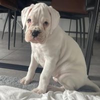 Hannah ist eine 6 Monate alte Boxerin und sucht ein Zuhause mit Erfahrung in der Ausbildung gehörloser Hunde.
