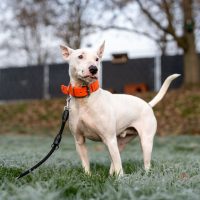 Der Bullterriermix Rüde ist noch im Training, da Henry noch nicht gut mit Reizen umgehen kann und den Wesenstest noch vor sich hat. In reizarmer Umgebung ist er ein sehr anhänglicher Kerl und bindet sich sehr stark an seine Bezugsperson. Henry ist jedoch sehr stressanfällig. Im Tierheim ist Stress kaum zu vermeiden.