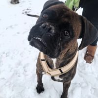 Der bildschöne Boxerrüde Henry kam zu uns auf den Boxerhof, weil seine Besitzer altersbedingt mit dem sportlichen und aktiven Rüden überfordert waren.