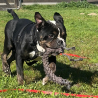 Zu Beginn zeigte er sich sehr ängstlich und brauchte jede Menge Zeit, um Vertrauen zu uns Pfleger*innen zu fassen. Sobald das erreicht war, zeiget er, was in dem Bulldoggen-Mix steckt: ein freundlicher, flotter Kerl, der seine Spielzeuge sehr gerne hat, sodass er sie auch mal mit auf den Spaziergang nehmen möchte. Kuscheleinheiten dürfen natürlich auch nicht fehlen. Zu Beginn kann er sich ein wenig zurückhaltend zeigen und dadurch auch schreckhafter auf äußere Reize reagieren. Mit ein wenig Vertrauen sind die Reize dann auch nicht mehr so gruselig.