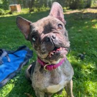 Diese Französischen Bulldogge stammt alle aus einer Hobbyzucht, die im Rahmen einer Beschlagnahmung aufgelöst wurde. Nun sucht sie liebevolle und verantwortungsbewusste Menschen, die bereit sind, ihr mit viel Geduld und Verständnis einen Neustart ins Leben zu ermöglichen.