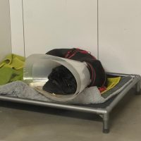 Kurt geht’s soweit gut, aber er ist leider kein einfacher Patient, da er sehr schlecht zur Ruhe kommt. Bei den Behandlungen ist er super lieb, aber energiegeladen – der Kragen stresst ihn so sehr, ist aber leider nötig.