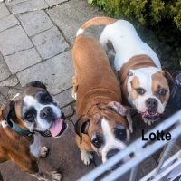 Zu meiner Geschichte. Ich bin Lotte und kam vor gut dreieinhalb Jahren nach Deutschland zu meiner Familie. Hier lebt noch ein Boxerrüde in meinem Alter, ein “Für-immer-Herz-Boxer” Mädchen und zwei Chihuahuas.