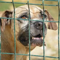 Maggie ist eine sehr menschenbezogene Hündin, die extrem leidet unter dem Eingesperrtsein Tag und Nacht.