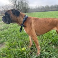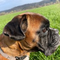 Aufgrund gravierender familiärer Veränderungen und schwerer Erkrankung ihres Frauchens sucht Maira eine neue Familie.Maira ist mit Kindern aufgewachsen und sehr geduldig mit Umgang mit diesen. Menschen gegenüber ist sie freundlich, offen und verschmust.Die Hündin hat eine sehr gute Erziehung. Sie ist folgsam, abrufbar und gut zu führen.Maira kennt das Autofahren und ist ein angenehmer Beifahrer. Nach der Eingewöhnung kann sie eine angemessene Zeit allein bleiben. Im Umgang mit Rüden ist Maira entspannt, bei Hündinnen entscheidet die Sympathie.Die Hündin ist recht sensibel und benötigt daher einen liebevollen Umgangston und ganz viele Streicheleinheiten.Es ist davon auszugehen, dass die Hündin eine allergische Reaktionen hat. Dies muss noch genauer abgeklärt werden.Eine ganz zauberhafte und liebenswürdige Boxerin wartet auf ihre Menschen.