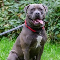 Spaziergänge sind mit sind im Allgemeinen aber eher unproblematisch und er läuft auch im Allgemeinen gut an der Leine mit. Allerdings ist er manchmal der Meinung, wenn er irgendwo hin möchte, dass die Person, die ihn an der Leine hat mitkommen muss und dann muss man dagegen halten, damit er einen nicht durch die Gegend zieht.