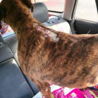 Mocka lief sofort auf die Frauen zu und wedelte fröhlich mit ihrem Schwanz. Bei näherer Betrachtung stellten sie fest, dass Mocka nicht nur die offenen Wunden, sondern auch ein Problem mit einem Auge hatte. Sie wurde kurzerhand ins Auto gepackt und nahm auf den Säcken mit Hundefutter Platz, die für bedürftige Hunde bestimmt waren. In dieser Situation befanden sich die Tierschützerinnen näher an Varna als an Schumen und so riefen sie bei einem befreundeten Tierheim in der Nähe von Varna an und fragten, ob Mocka spontan vorübergehend aufgenommen werden könnte. Dies wurde bejaht und so war Mocka erst einmal in Sicherheit. Ihre offenen Wunden wurden versorgt, ihr Auge konnte dort jedoch nicht behandelt werden.