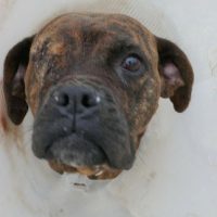 Mocka wird auf etwa 4-5 Jahre geschätzt (geb. ca. Juli 2021). Da wir nichts über ihre Vorgeschichte wissen, wünschen wir uns für Mocka geduldige und einfühlsame Menschen, denn wir wissen nicht, ob sie schon mal in einem Haus gelebt oder welche Erfahrungen sie gemacht hat. Ihren ersten Ausflug an Halsband und Leine auf der Straße vor dem Tierheim hat sie gut gemeistert. Anfangs war sie noch unsicher, vielleicht auch wegen des ungewohnten Halskragens, doch auf dem Rückweg war sie bereits etwas flotter unterwegs. Es könnte sich bei ihr um eine reinrassige Boxerhündin handeln, die sicher auch schon Welpen großzog. Damit ist nun Schluss, die Familienplanung ist abgeschlossen. Ab sofort steht sie im Mittelpunkt. Mocka ist gechipt, geimpft, kastriert und bereit für ein liebevolles Zuhause.