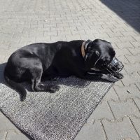 Mucki zeigt aber auch typisches Wachverhalten und Schutzverhalten, nicht den Menschen gegenüber, sondern gegenüber anderen Hunden. Sie passt schon sehr auf ihre Familie auf. Zeigt da auch zum Teil, wie Ernst sie es wirklich meint. Da kommt die Rasse wirklich durch. Explizit schwarze Hunde mit kurzem Fell mag sie gar nicht. Katzen und auch Kinder sind kein Thema für Mucki, obwohl sie so groß ist.
