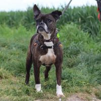 Sie ist sehr gesellig mit anderen Hunden, besonders mit Größeren, bei denen sie sich sicher und geborgen fühlt. Sie würde in einem Zuhause mit einem ausgeglichenen Hundekumpel aufblühen.