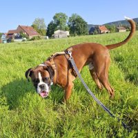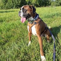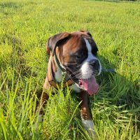 Er hat schon eine gute Erziehung bekommen. Er kennt die Grundkommandos und geht brav an der Leine. Otto zeigt sich bei uns gegenüber Artgenossen sehr entspannt und verträglich. Katzen sollten nicht im neuen Zuhause sein. Aufgrund seines jungen Alters ist Otto voller Sturm und Drang und braucht entsprechende Beschäftigung und Auslastung. Kinder sollten daher im standfesten Alter sein. Otto ist kein Stadthund, er hat bisher ländlich gelebt im Haus mit Garten. Durch Familiennachwuchs fühlte sich diese mit den Ansprüchen eines jungen Boxers überfordert.
