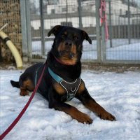 Der Rottweiler Pablo kam im Dezember 2022 zu uns, weil seine Halter mit ihm überfordert waren.