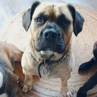 Er kommt mit allen Hunden klar egal welchem Geschlecht oder Größe. Er liebt Menschen sehr , auch hier egal ob gross oder klein . Zu klein sollten sie allerdings nicht sein , denn Rocco ist sehr sehr stürmisch und hat ordentlich Power.