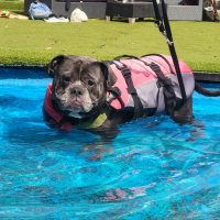 Wie man auf den ersten Blick erkennen kann, ist er Opfer einer absoluten Qualzucht – die Körperproportionen stimmen ganz und gar nicht, seine Knochen sind viel zu schwer und teils zu kurz, sein Kopf viel zu groß im Vergleich zum Körper und seine Nase viel zu kurz, sodass er erhebliche Schwierigkeiten mit der Atmung hat. Er kann nicht normal sitzen und trotz seines noch recht jungen Alters ist es ihm nicht möglich, weite Strecken zu laufen, da sein Körper dies nicht mitmacht.