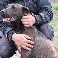 Santal lebte, wie auf einem Bild zu sehen, an einer Kette. Der Besitzer hat sie zum Glück freigegeben und sie konnte erstmal ins Tierheim ziehen. Sie liebt die Nähe ihrer Menschen, genießt Streicheleinheiten und mag es nicht, wenn sie allein ist.
