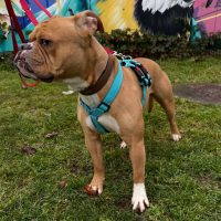 Capone zeigte sich anfangs sehr unsicher im Kontakt zu neuen Menschen. Durch bellen und weglaufen machte er deutlich, dass er lieber für sich sein wollte. Sobald man sein Vertrauen gewonnen hat fordert der junge Rüde die Zuneigung auf die typische Bulldoggenart ein und kann dabei auch gerne mal überdrehen. Durch den Aufbau von strukturierten Regeln und Grenzen lässt er sich gut aus dem Verhalten herausholen. In seiner vertrauten Umgebung ist Capone ein sehr aufgeweckter und freudiger Kerl. Bei seinen täglichen Spaziergängen sieht das leider ganz anders aus. Hier zeigt sich deutlich, dass Capone ein ziemlich ängstlicher Hund ist. Sind die Umgebungsreize ihm nicht bekannt oder sind es einfach zu viele möchte er am liebsten die Flucht ergreifen. Eine doppelte Sicherung mit einem Panikgeschirr ist hier notwendig um ihm die Sicherheit zu geben das Unbekannte zu meistern. Wie unsicher Capone generell ist umso eher blüht er auf wenn er Artgenossen sieht. Hier möchte er unbedingt in den Kontakt und kann dann auch gerne mal seine gute Kinderstube vergessen.