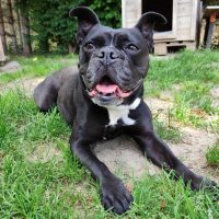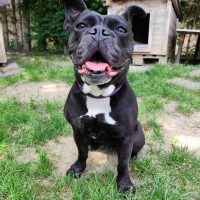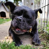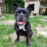 Also… wo fangen wir an? Ich bin Shanty, eine Old English Bulldog-Dame mit ordentlich Wumms hinter der Pfote und einem Temperament, das locker mit einem Düsenjet mithalten kann. Fit bin ich wie ein Turnschuh – ein ziemlich schwerer Turnschuh, der mit Anlauf in dein Herz (oder deinen Schoß) springt.