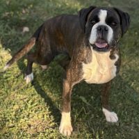 Vor kurzem im Tierheim angekommen, ist Talia eine sehr sanfte junge Boxerhündin, die nur auf eine Familie wartet, die sie lieben kann .