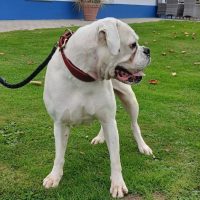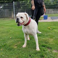 Die weiße süsse Maus ist die Mutter von Fenja und Finni. Viva ist eine aufgeschlossene, boxertypisch verspielte Hündin. An der Leine gehen klappt schon ganz gut. Viva möchte Einzelhund sein und ihre Menschen für sich haben, was bei ihrer Vorgeschichte sehr verständlich ist. Einzige Ausnahme: Bei uns lebt sie mit ihrer Tochter Fraya zusammen, die beiden verstehen sich gut und könnten im Doppelpack bleiben, was aber nicht Bedingung ist. Viva sucht nun ein schönes Zuhause bei lieben Boxermenschen, damit sie ihr Leben endlich genießen kann. Wünschenswert wäre ein eingezäunter Garten zum Spielen und Chillen. Ob Viva alleine sein kann, können wir nicht einschätzen, wahrscheinlich muss das in kleinen Schritten geübt werden.